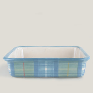 Size: 1.8L Volume, 7cm Height , 22.5cm Width , 22.5cm Depth (approx.). Due to the hand-finished nature of our stoneware products, some variance in colour and pattern is likely to occur.